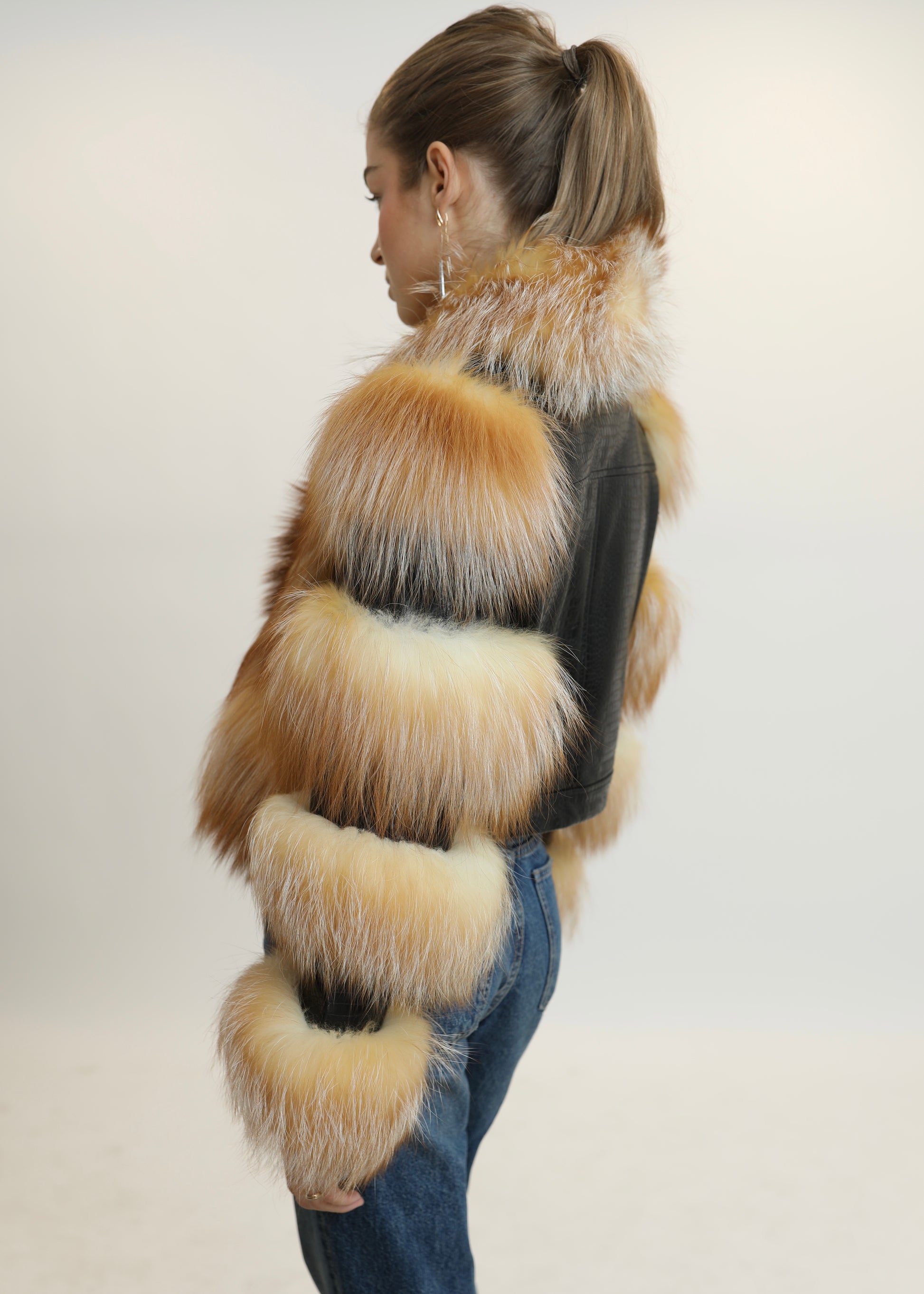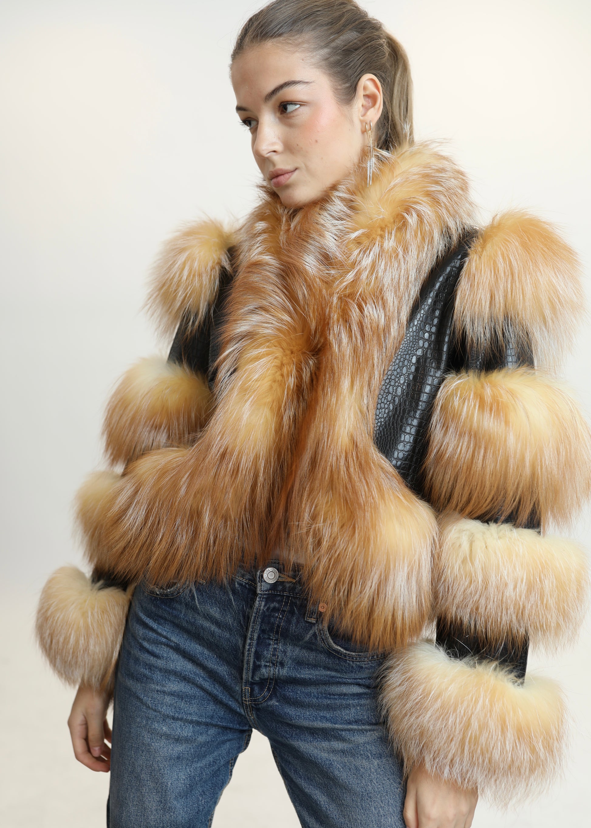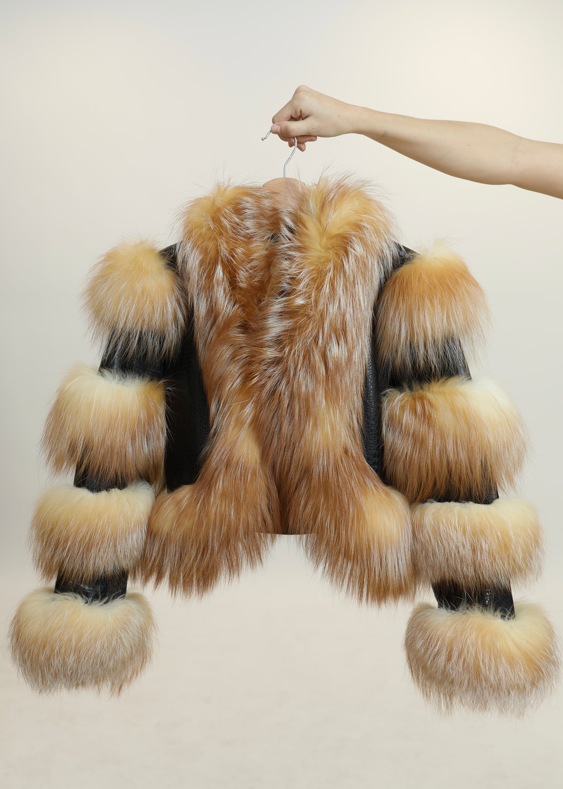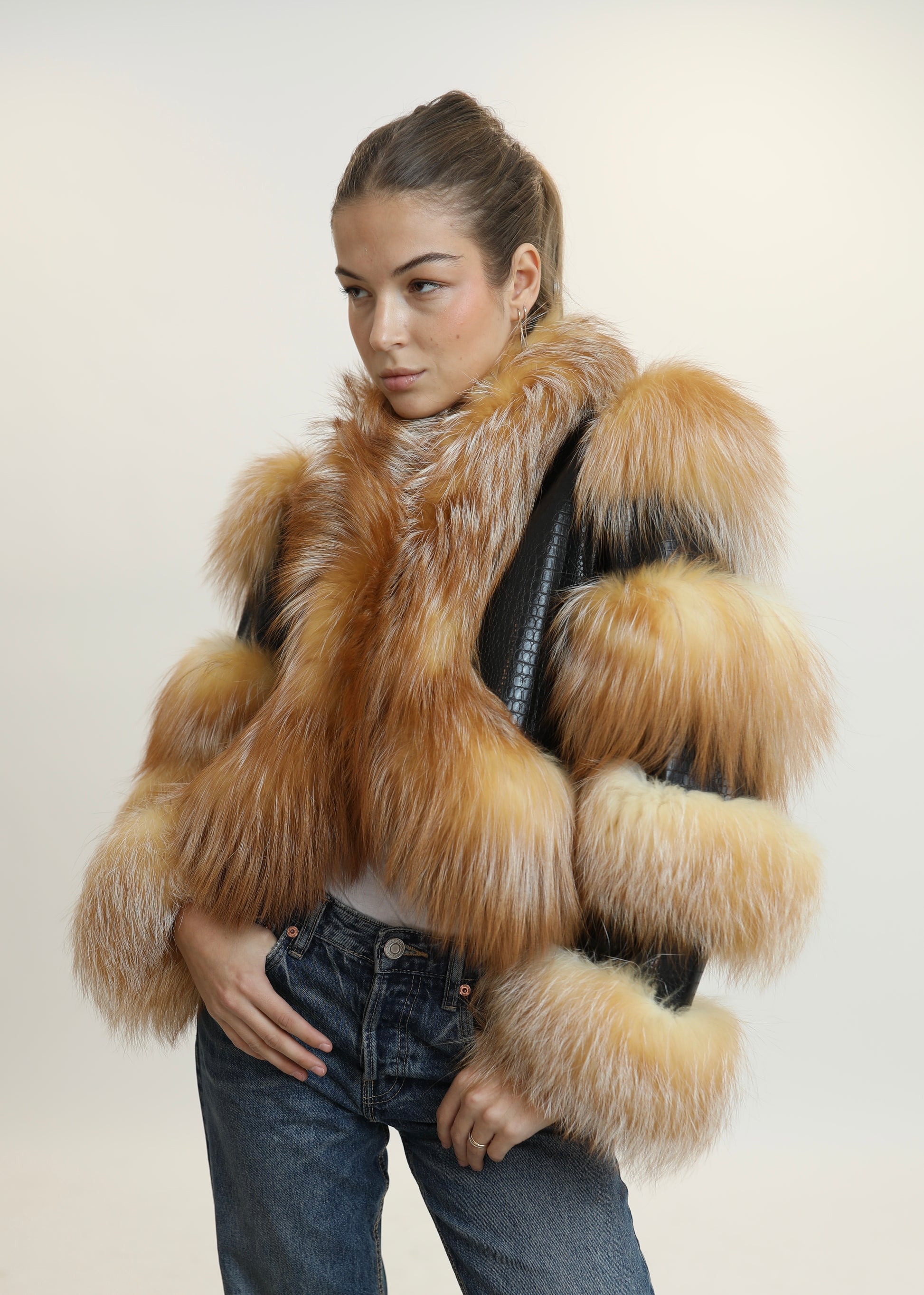 Un icono de nuestra colección, pensado para robar miradas y convertirse en el centro de todas las conversaciones. El abrigo GOSSIP combina cuero trabajado con paneles de piel natural en franjas voluptuosas que recorren mangas y bajos, creando un efecto arquitectónico y lujoso. El frente se viste de un espectacular pelo en tonos dorados y cálidos que aportan movimiento, suavidad y un aire teatral imposible de ignorar.