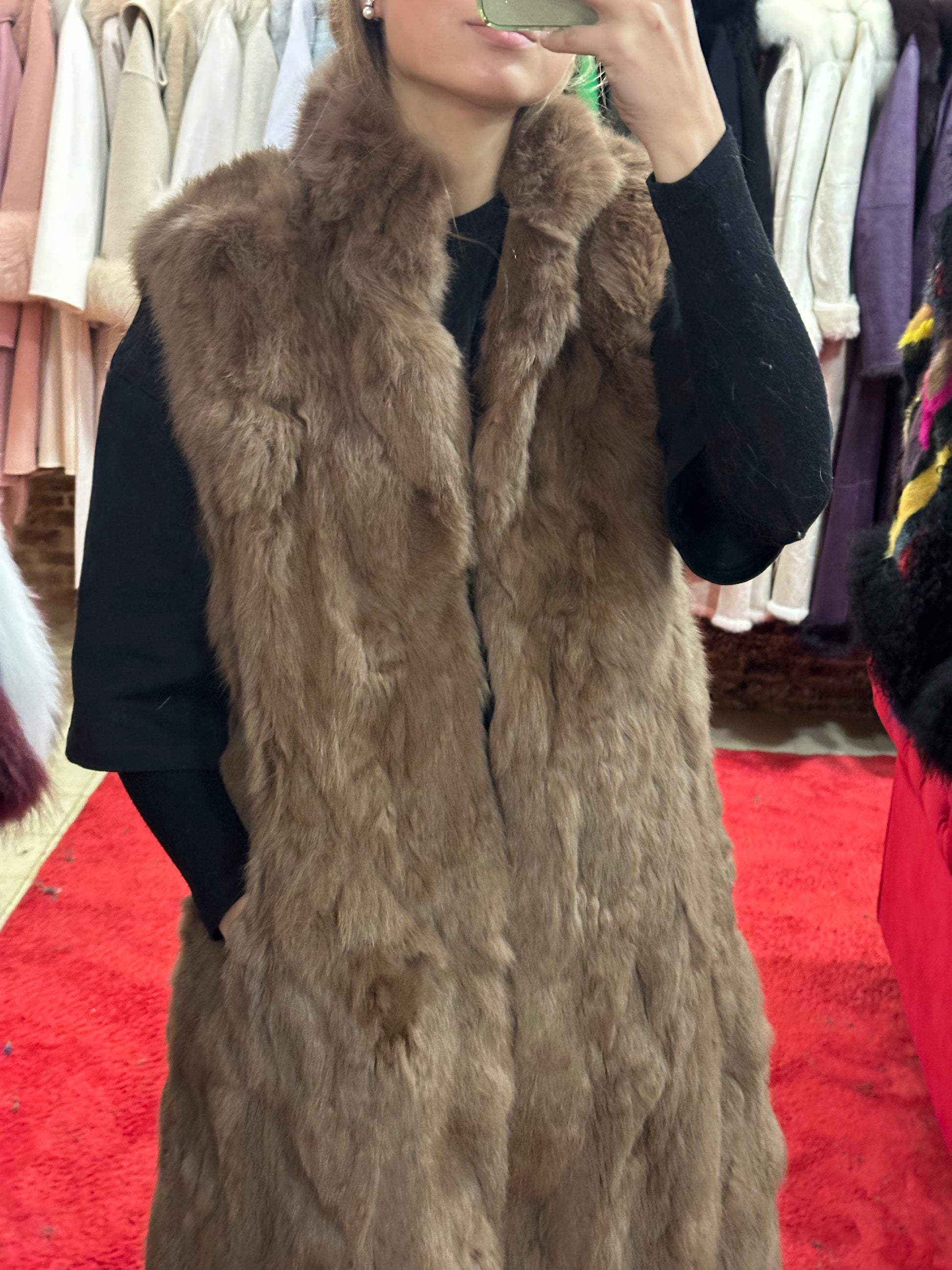 Calentito, de piel de rex 100% y largo para favorecer la silueta.